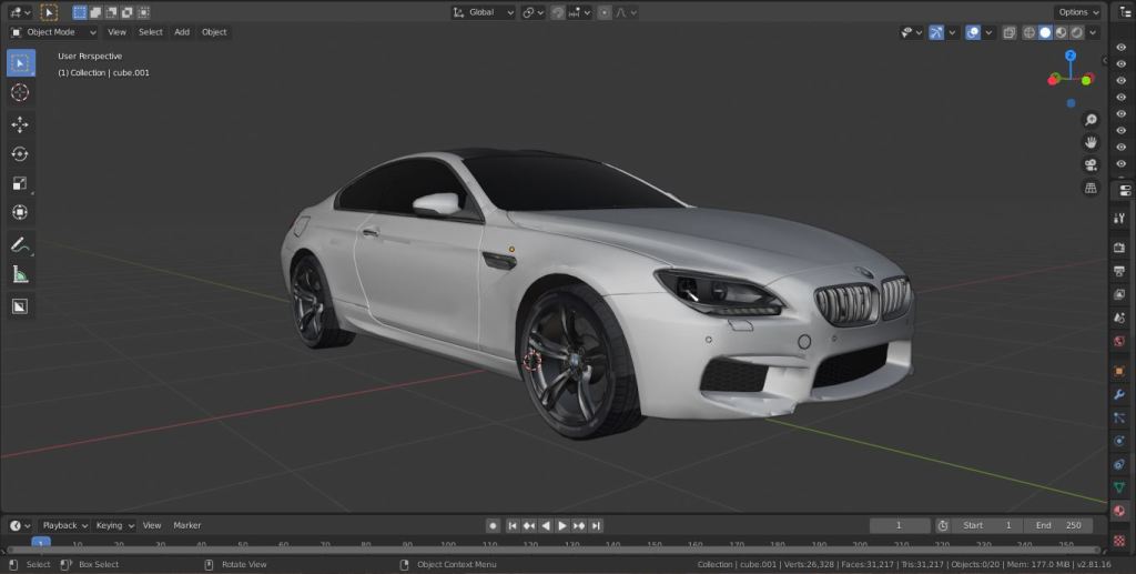 First, you’ll need a symmetric model (trees, houses etc. are not symmetric) like a car, for example. Can’t find one but you still wanna learn? Get this BMW M6 and follow along.